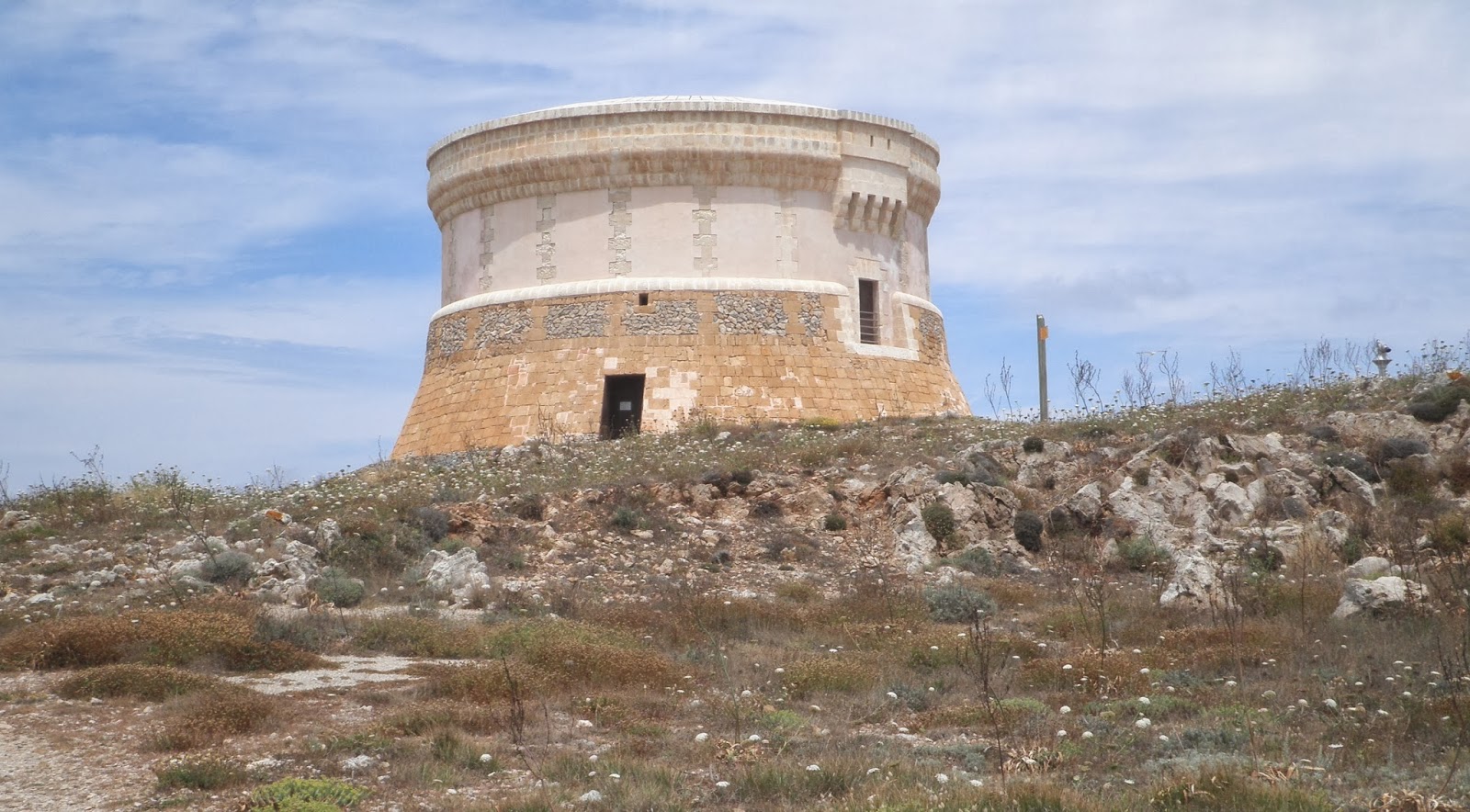 Una mujer, que ha salido para echar la basura al contenedor, me dice: “No te pierdas la bocana de salida del puerto al mar y, de paso, párate en la Torre” y, me añade: “para comer, en La Guapa”. Continúo la calle hacia la Torre de Fornells y me voy asomando a los acantilados. Así llego a la bocana. Un matrimonio nórdico está sentado en el banco, con sus dos hijos rubitos, en el momento en que un ave emprende su vuelo.